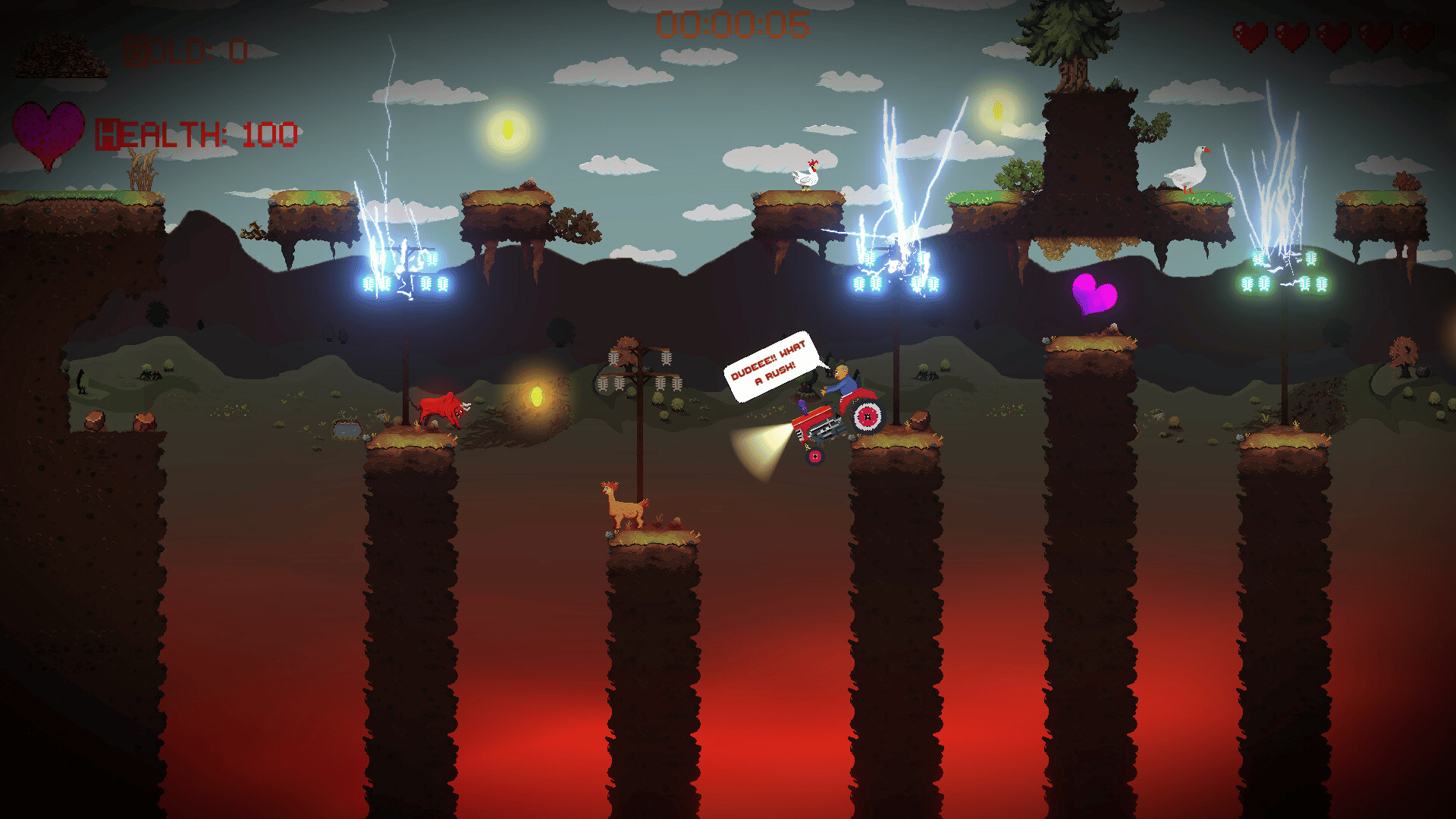 Play as a Llama! Spit on farm animals, farmers and end-cows. Speedrun cozy farms and unique dungeons in this short, fun and light-hearted platformer.