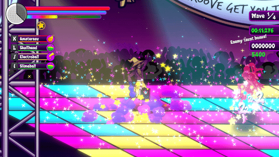 Dance, style, and spellcast your way through hordes of dazzling and dangerous baddies on your way towards fame and glory in this groovy discofest! There's one catch though, all your spells get randomized every 30 seconds!