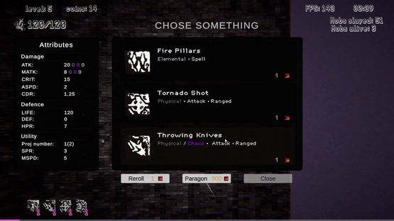 A simple short survival roguelite where you build you character by picking up various skills and boons.