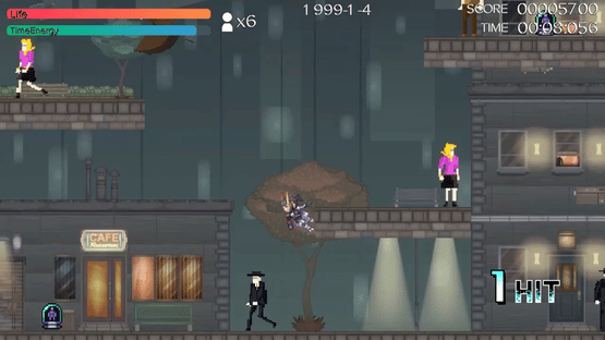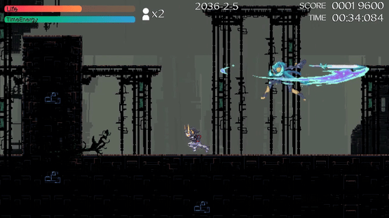 Stop the time, and Go. New style 2D scrolling action game. Ninja who came from 2036 to save the world.