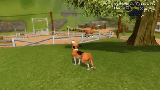 In Dog's Life you play Jake the puppy, as he explores the USA in an attempt to foil a fiendish plot. Miss Peaches doesn't like dogs, and sees them as a way of making money, by dog-napping Daisy the pedigree dog. The dog elements are closely integrated into the game - smells are indicated by lines of coloured smoke, emphasising a dog's acute sense of smell. Locating footprints is also done via this Smellovision mode. Tricks can be learnt, and used to win treats from humans. Jake must explore vast environments and interact with 15 breeds of dog. The aim is to get them onto his side, which is usually done by either having more bones than them, or winning a subgame against them. These are also dog-based - in one you must dig up bones, while another has you 'marking territory' to annex a full screen.