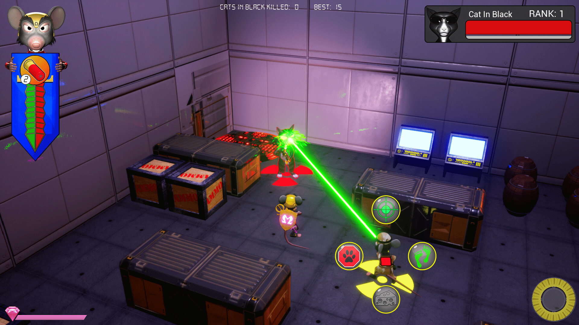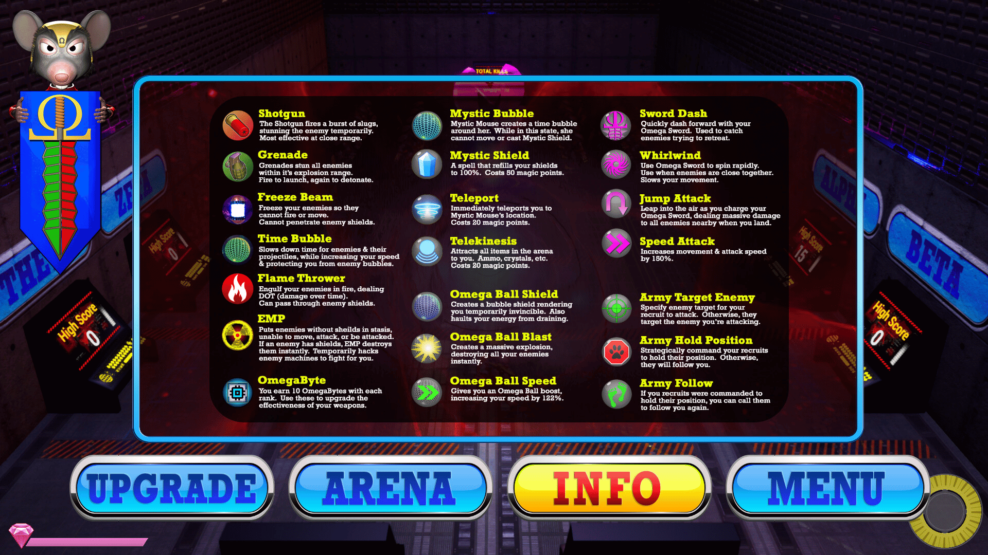 Omega Mouse is a tactical-action style game of cat and mouse. Know when to retreat and when to attack. Climb the leaderboard rankings by competing for the highest enemy kill counts.