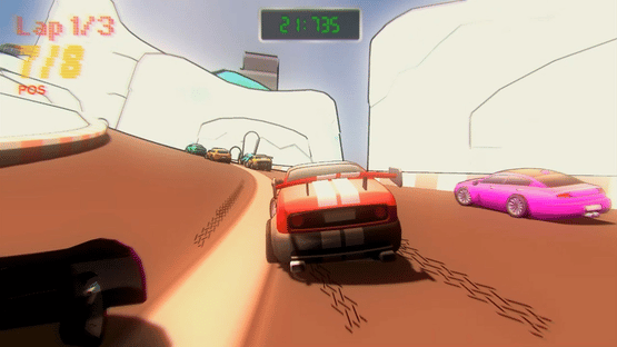 An animated car racing game created with cartoon rendering! Play against each other! Be the champion in every race!
