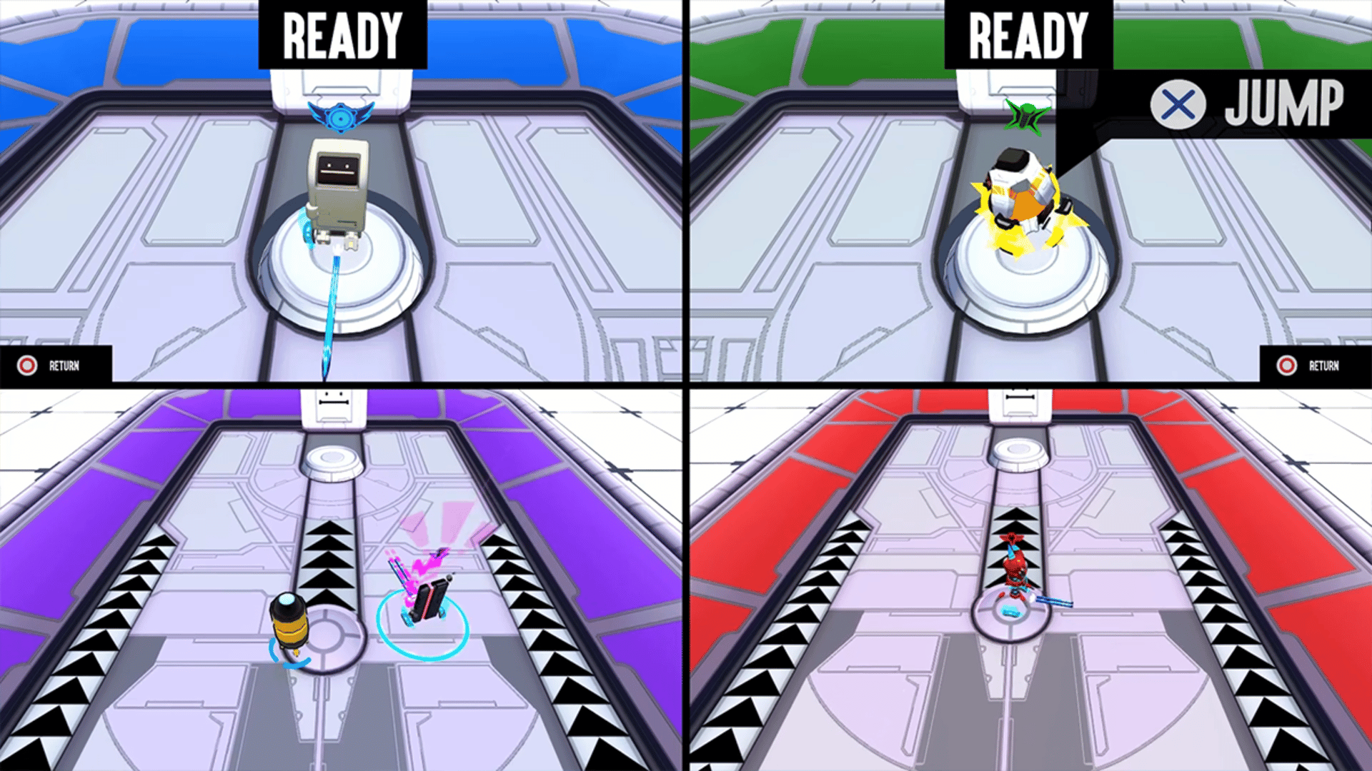 Blade Ballet is a whirling dance of multiplayer robot destruction. Each character possesses a unique personality and special abilities - use them to claim victory as you spin from one challenging arena to the next, battling for dominance in this action-packed fighting game. Blade Ballet is simple enough for anyone to pick up a controller and jump into the fray, but players must master the timing and unique abilities of each bot to come out on top. This makes the game easily accessible to new players, while allowing for a high skill ceiling to truly compete with your friends. Much of the Blade Ballet gameplay revolves around the innovative “blade spin” mechanic – players control their rotation to sneak past their opponents’ defenses and secure the kill. Each arena also introduces new game mechanics that players must incorporate into their strategies.