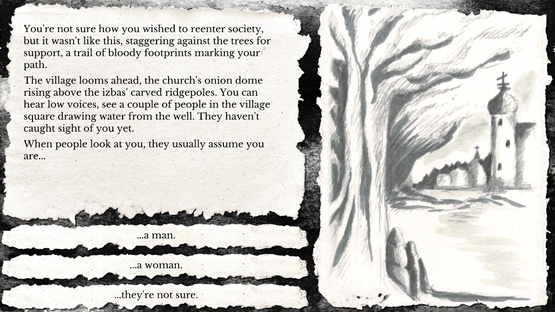 When the villagers of Derevnya begin turning up maimed, suspicion falls on you. Track down the beast to clear your name and save the village—but to unravel the mystery, you will need to confront your own past. A survival-horror choose your own adventure set in Kievan Rus'.