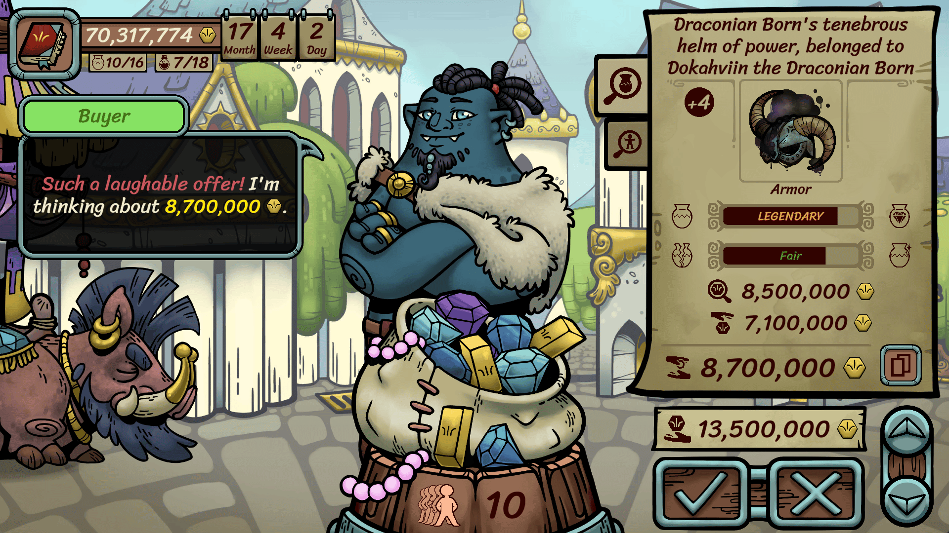 Welcome to the Pecunian Empire, travelling merchant! Head between our many cities, expand your collection of wares and grow your riches. If your talent and skill are sharp enough, you may be in with a shot of winning the Wandering Merchant Quest and proving that YOU are the best dealer in town!