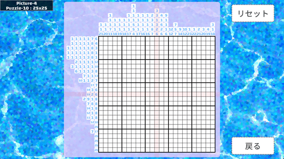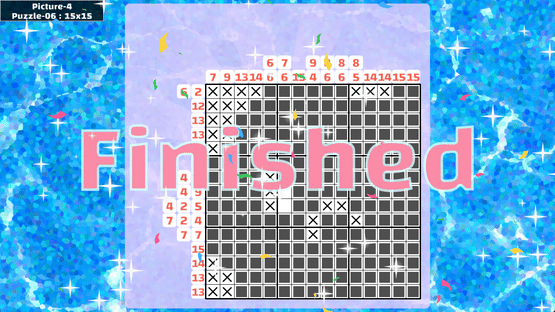 This game, called "Nonogram", is a logic puzzle that correctly fills the squares from the given hints. Solve the bit harder puzzles and complete the "cute" picture!