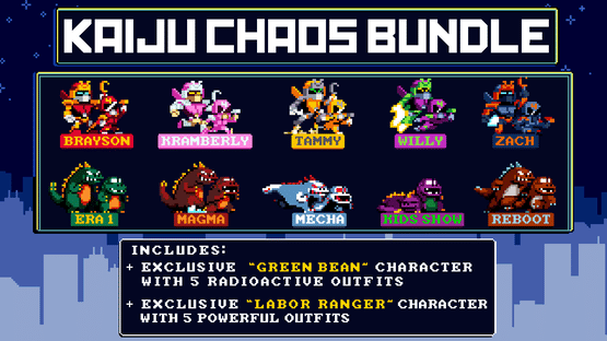 Includes: - Exclusive playable character Labor Ranger with 5 outfits - Exclusive playable character Green Bean with 5 outfits