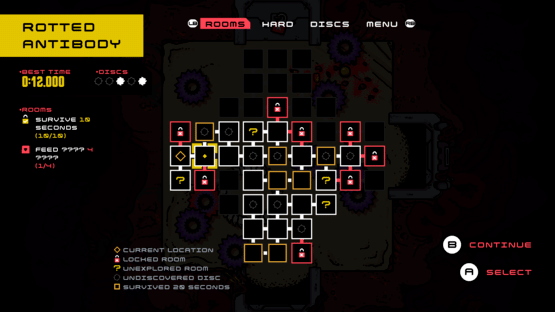 Disc Room is a hardcore dodge-'em up brought to you by Kitty Calis, Jan Willem Nijman, and Doseone. A utopian future filled with lethal discs, requiring only reflexes and strategic use of slow-motion. As more rooms are unlocked, a way out might appear: "You don't have to die... you can live! Live 30 seconds and grow old!" An arcade survival game with the goal of lasting 30 seconds in a room where various types of spinning bladed discs appear and bounce around, your only advantage is a short duration ability to slow down time. There are 5 sets of 4 stages with a bonus stage unlocked if you survive 30 seconds in all 4. The next set of stages is unlocked based on the overall points collected. A total of 3 points can be collected for each normal stage, by surviving 10, 20 or 30 seconds, A re-imagined version of the game was revealed in 2020.