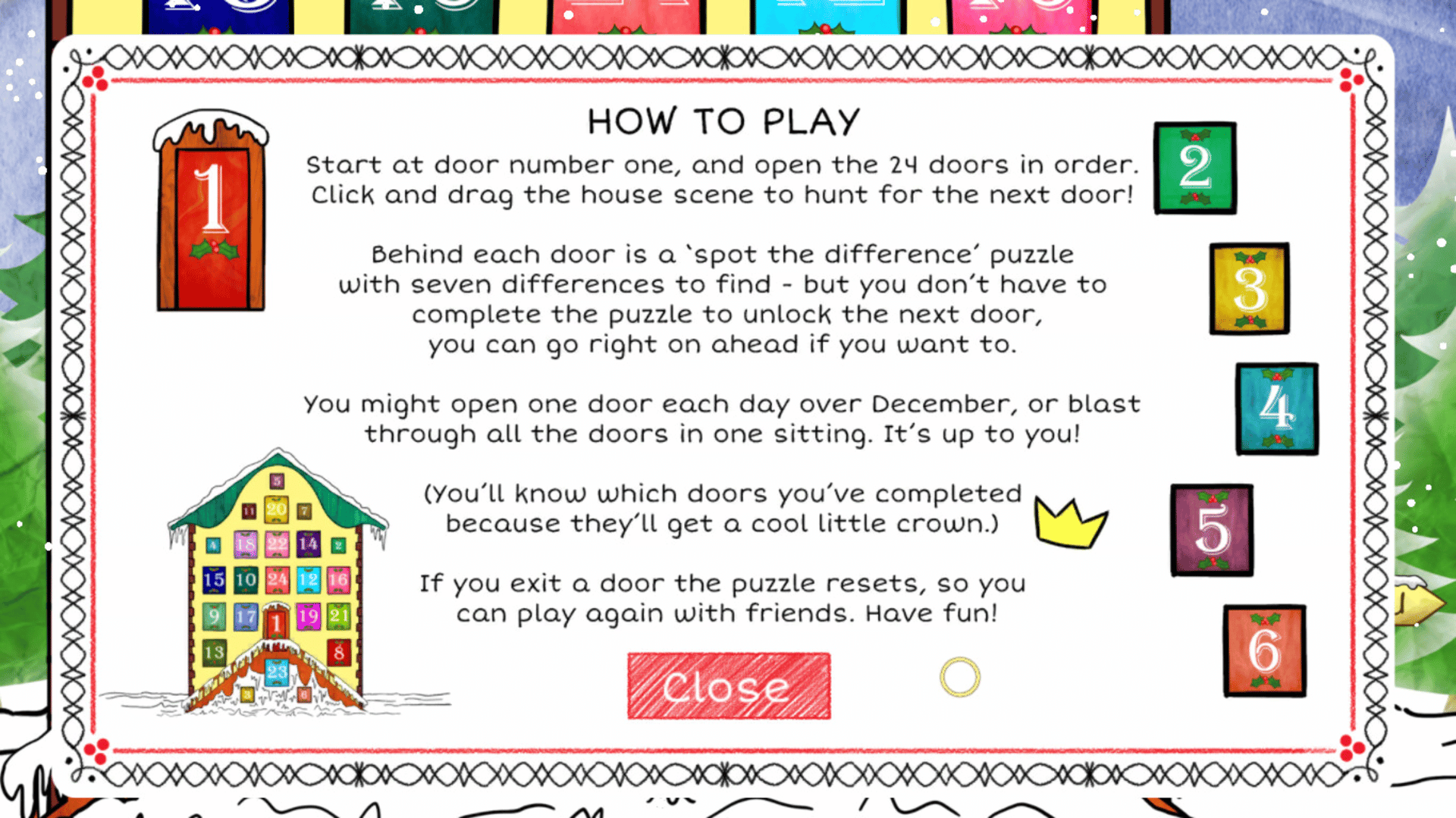 Open a door a day to find a festive ‘spot the difference’ puzzle or ‘sleigh’ them all in one short, sweet spotting session. The choice is yours!