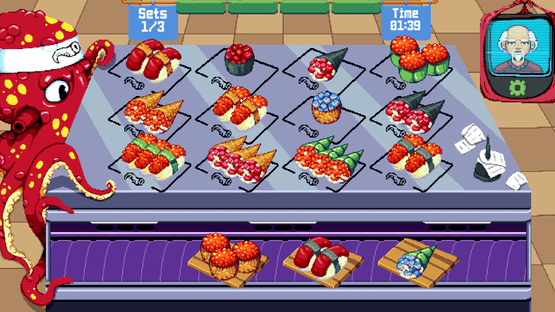 Running a restaurant is no easy task. The chef's way of cooking is a puzzle, he serves in sets of three and only if you manage to properly combine plates. Another challenge is the conveyor belt and anxious customers. Plates never reach them in time, can you work out a solution?