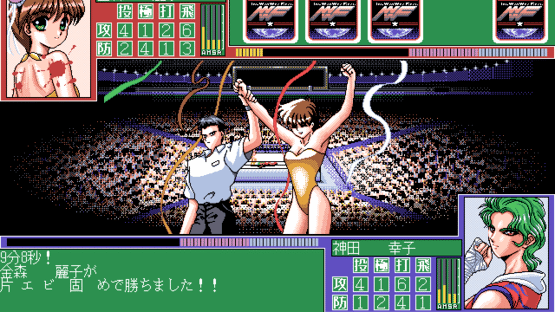 Wrestle Angels 3 is, like its predecessors in the series, a turn-based wrestling-themed game. The player takes the role of the manager of a new company that represents and trains young wrestlers, guiding them to participate in an all-female league. Wrestlers can be selected and hired either directly by following the league's records, or by scouting the city and recruiting suitable candidates. Afterwards the wrestlers can be trained by choosing and investing points into particular moves. It is also possible to send them on vacations. Most actions in that preparation mode cost action points (AP); running out of them ends the turn. The manager can then send the wrestlers to participate in tournaments. The actual wrestling matches can be set in auto, with their outcome determined by the wrestlers' parameters. However, it is also possible to control them manually, choosing each move from a deck of randomly dealt cards. Moves include attacks, special attacks of various kinds, charging, healing, etc. There is also an exhibition mode where the player can select any of the 48 available wrestlers and take them to single or tag-team matches.