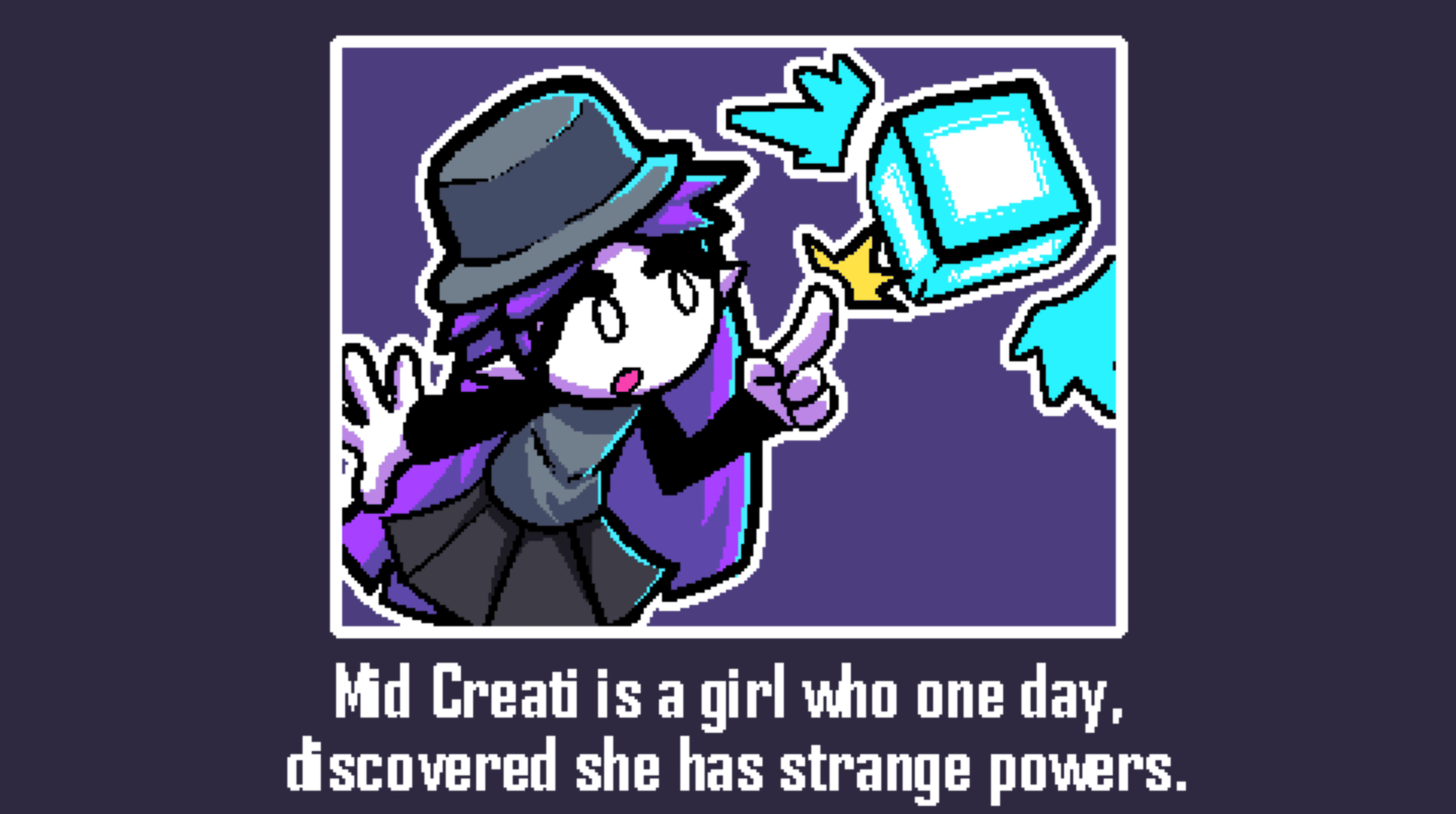 MidCreati is a platformer game where a girl must escape by creating platforms, as she is captured by an evil organization who wishes to research her mysterious powers.