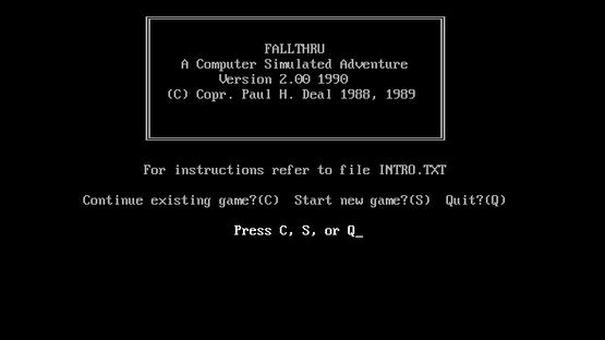 The beautiful vistas of farmlands, forests, mountains and deserts that greet you upon your arrival on Faland does little to calm your nerves about how you arrived at this strange land. Considering how dangerous it is with all the demons, monsters, wild animals and renegades running around you know you have only one thing you must do. Get back home. The farm settlement of Or'gn is where your journey home begins. You and up to three players take turns trying to reach home while scoring as many points as possible. Since the journey is dangerous you may die but you will have multiple chances to continue your quest at a cost of demerit points. You must examine many items, talk to the inhabitants and solve side-quests. Arm yourself well and do battle with the enemies lying in wait. Earn ralls, the currency of choice around these parts, by finding treasure or trading commodities with shopkeepers. Raise your status high enough and you just may find your way back home. Utilizing a rich back story FallThru is a interactive-text role playing game played in turns or alone. The player can communicate, trade and earn money in the ultimate goal of leveling their character up enough to finish the quest. The player may save their game at any point to continue later or to pass the game to another player. Dying will cost points but allows players to pick up where they last saved.