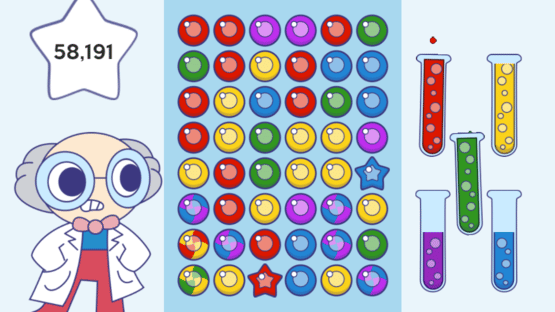 It's not easy being a candy scientist! Dr. Bon Bon needs your help. Match three or more bonbons to clear them and four or more to morph into a bonus star. When the test tubes are full, click two to unleash Dr. Bon Bon's patented bonbon-melding technology!