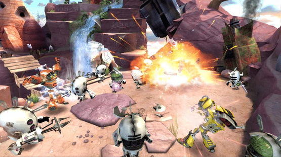 Spare Parts tells the story of courageous robots Mar-T and Chip, who find themselves dumped out with the rubbish on a strange planet. Working together in co-op mode, the mechanical duo must find a way to repair an abandoned space ship and escape the planet before evil Lord Krung can dispatch his henchmen to destroy them. Searching the hostile environments for ship parts and currency, Mar-T and Chip will also collect upgradable action parts – such as Rocket Boots – to unlock new abilities that will aid them as they rescue other stranded robots, and battle countless enemies including the relentless Krofax troopers, hostile spider monkeys and even a Super Huge Mega Laser!