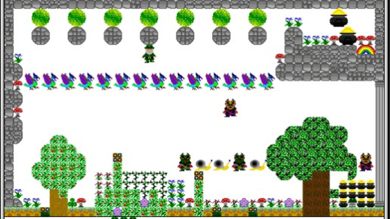 Push a pot of gold around single-screen mazes until it's resting on a rainbow.