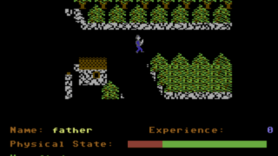 A curse has fallen on the island of Arulan called Shades and it causes people to vanish and reappear elsewhere. Whatever brought the curse also brought monsters and traps making the island a dangerous place to be. You play a hero determined to find out the truth and rid the island of the curse, monsters and traps, and make the island the lovely place it used to be. You can attempt this quest solo or you can allow three other players to attempt the quest as well, each taking it in turns at various points. Three skill levels can also be picked. Shades is a flick-screen arcade adventure where each screen is viewed from an elevated angle as you explore the island. You are armed with a sword (a crossbow can be found later) and as you move about the island you can encounter many monsters who can either be avoided, fought or pleaded with but if pleading fails then you can fight or run away. On each screen are many traps and you can search by pressing T but be careful because if there are many traps then not all will be revealed at first. Secret doors can also be searched for by pressing E and these are an important part to complete your quest. Fighting or hurting your self on traps decreases a Physical State bar but if you can avoid battles this can increase slowly if in the green section. Once the bar is empty then it is game over for that player. Scattered around the island are chests containing various objects to help you in your quest. You can carry up to eight items and any items carried can be dropped or used in various locations to aid you on your quest. Objects cannot be dropped on stairs or The Moors as the winds would blow them away. Taking objects or fighting monsters increase your experience and is used as a high score at the end of the game. As you explore the island the Shades curse can hit you and transport you to an earlier location you visited. Once all the players are dead then the game is over.