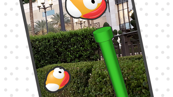Play Flappy bird in AR. Simply use your phone to view the space around you while you play.