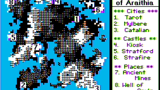 Wraith is a fantasy role-playing game like the author's previous effort Shadowforge, although it's set in a larger, more detailed world with an updated and expanded rule system. The worship of Metiria is being subverted all over the realm of Araithia; lords and commoners have turned their devotion to a newly-arrived evil power, the Wraith, whose monstrous armies now infest the island. You, guardian of the last Temple of the True Faith, are summoned to seek out and eliminate this evil.