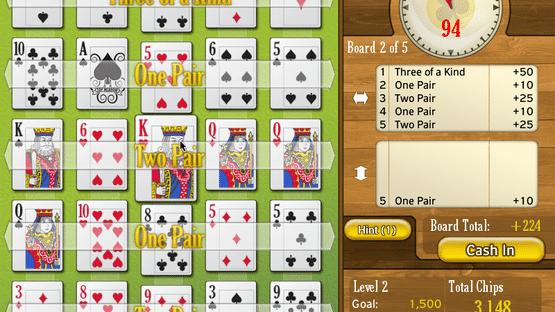 From the designer of the Incredible Machine, Puzzle Poker is a game that can be played quickly and casually or with some deeper strategic thought. Slide poker cards to make the best combination of hands before the timer runs out. Cash in early for bonus chips.