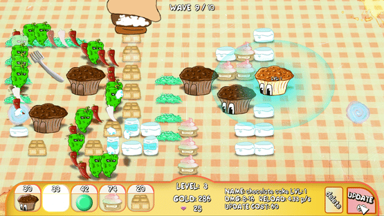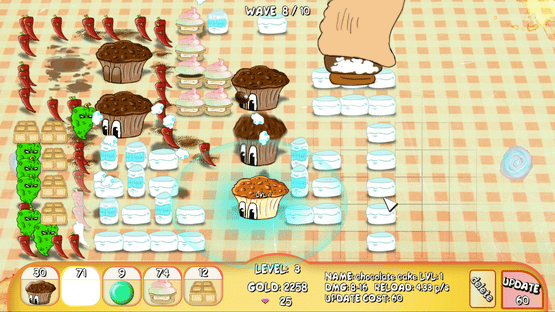 Extraordinary tower defense game with subjects of strategy: build sweet defensive towers to defend your own table from the invasion of unsafe monsters, bitter peppers. The task of all levels is to destroy opponents before they enter the portal movement.