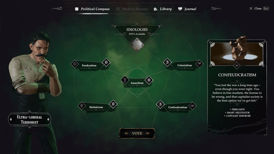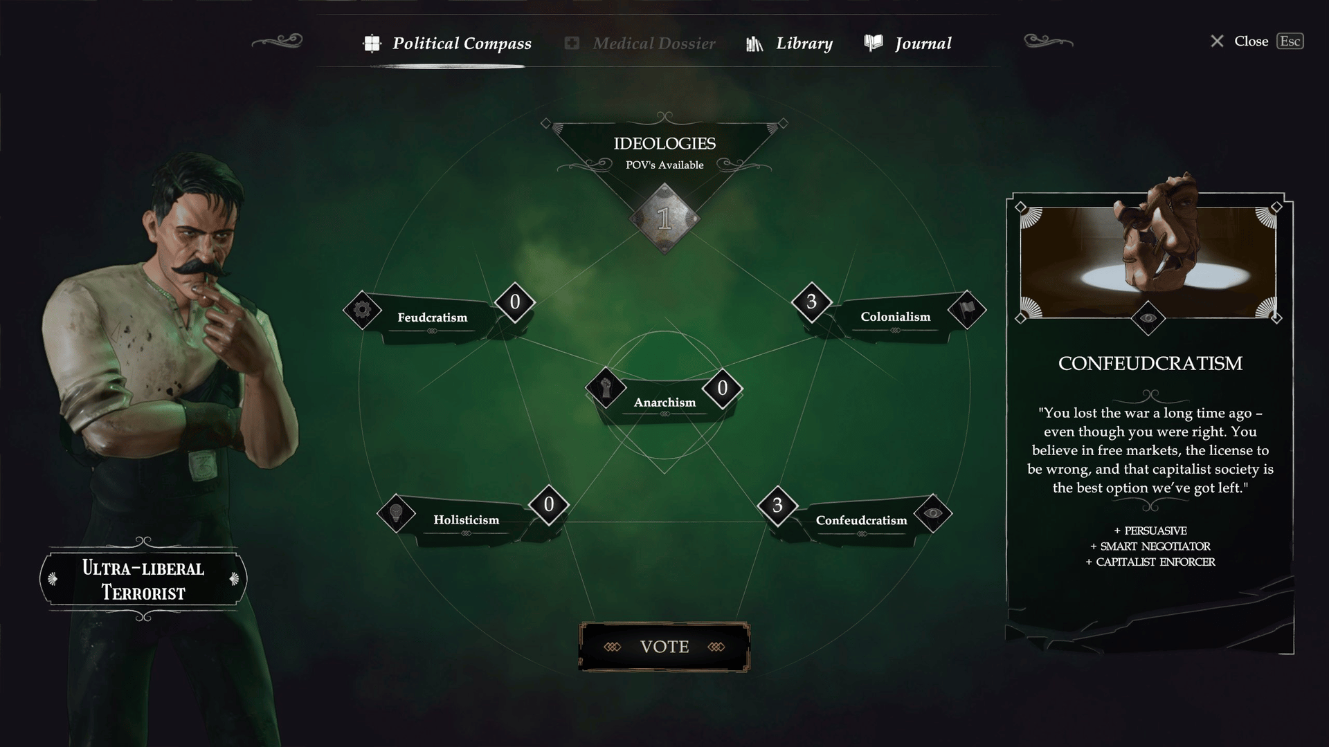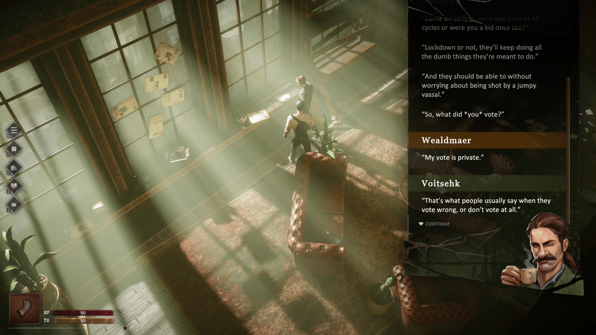 Feudalpunk CRPG, with Turn-based combat, set in a lockdown apartment block at the dawn of a world war. Investigate the mysterious triple murder next door, fight the Political Conspiracy, and make terrible choices before the flatmates do it for you!
