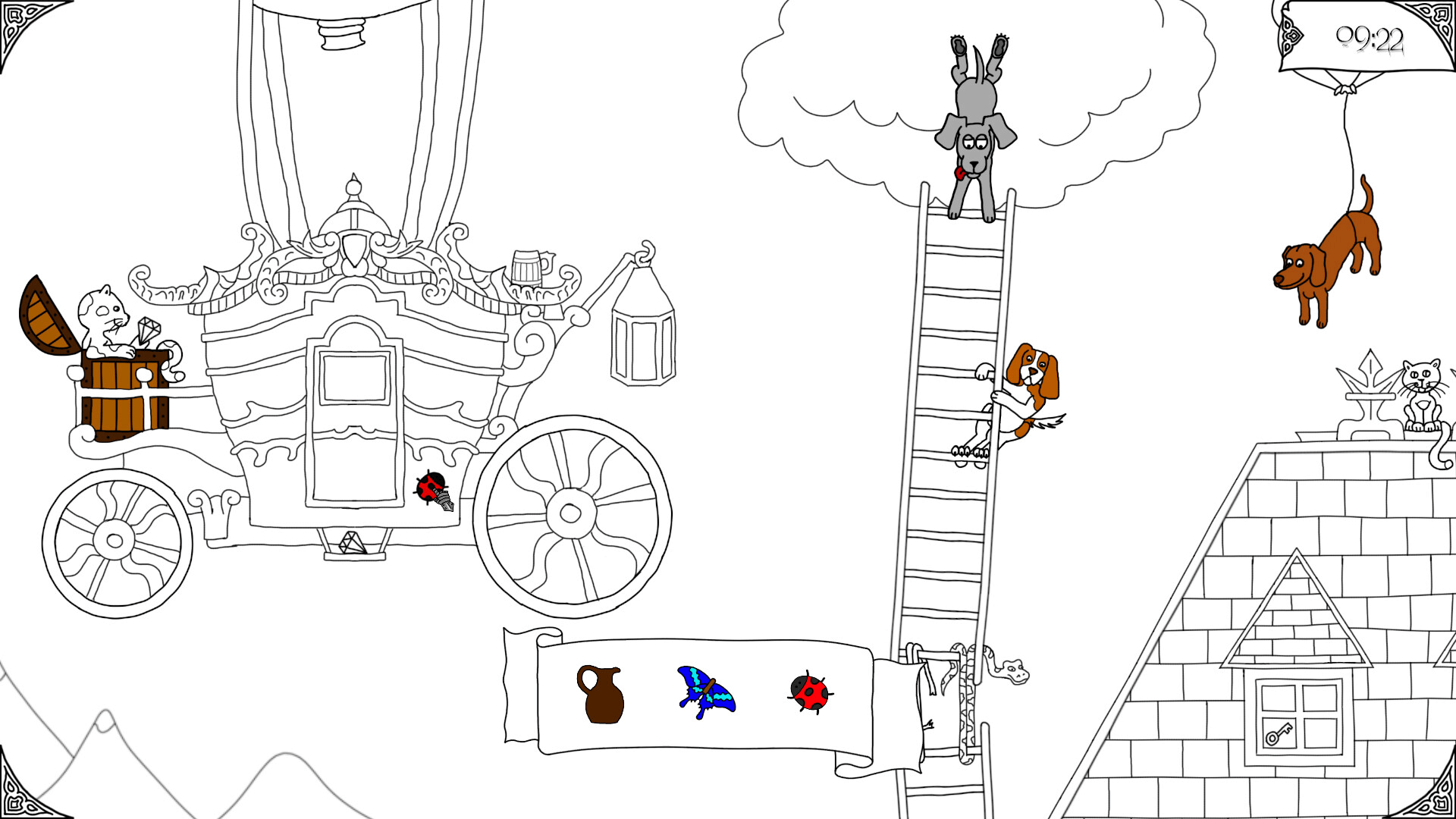 In Burg Wimmel the player has to find black and white hand-painted objects in the setting of a medieval castle and bring them to colorful life.