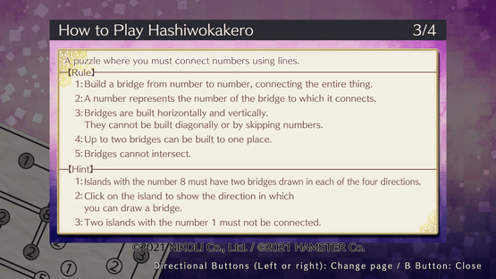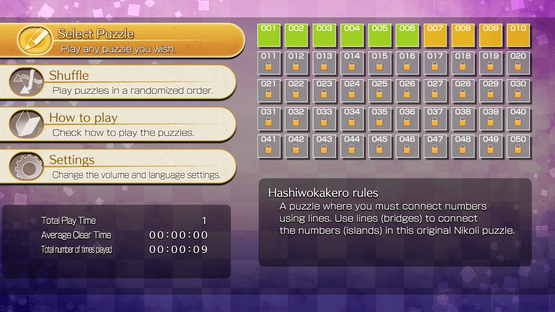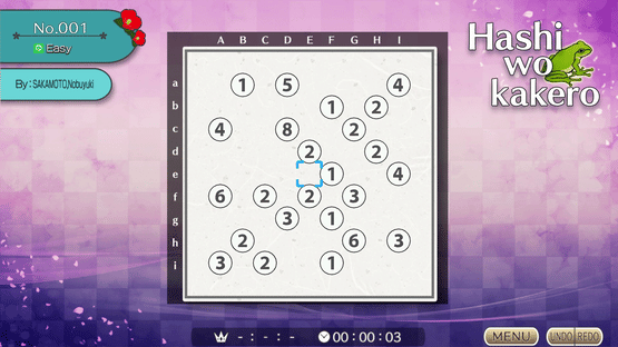 "Hashiwokakero" is a puzzle in which the numbers resemble islands, through which you draw lines resembling bridges. You have to take the entire board into consideration while progressing piece by piece. You do need to pay attention for this puzzle, but it can be solved smoothly and nicely.