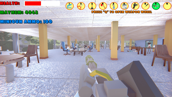 A third person action game where you are sick and tired of working your BS job for your BS boss. You have officially lost your mind and are ready to cause absolute mayhem and chaos in your workplace. Turn ordinary office supplies into weapons of mass destruction and destroy your colleagues!
