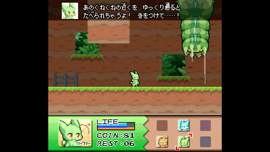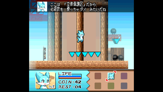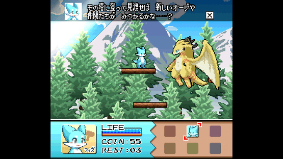 Control little dragons and explore a world full of gimmicks! Fiz and the Rainbow Planet" is a 2.5D dot-picture action game in which players switch characters in a resourceful manner as they progress.