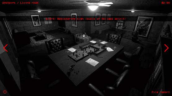A short, Christmas themed game where you scan through security camera feeds for anything Christmas related. If you see anything festivous, be they Christmas ornaments, gifts, or perhaps even Santa himself, report them immediately!