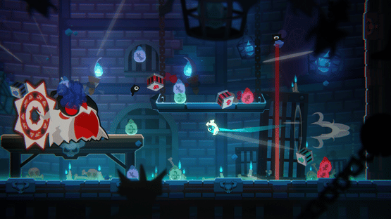 Go to save the world from HellFurnace. HellFurnace is a 2D boss rush game in which the protagonist, who has fallen into another world, defeats the boss. Avoid enemy attacks to collect beads and create weapons to defeat the boss.