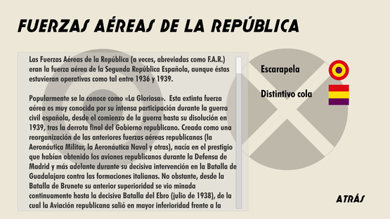 History can be thrilling, learn the importance of the air force during the Spanish civil war, the most important air battles, the pilots that fought and the airplanes they used. Fight through the air around the Jarama, Brunete or Ebro. Learn, at the same time you become a flying ace!