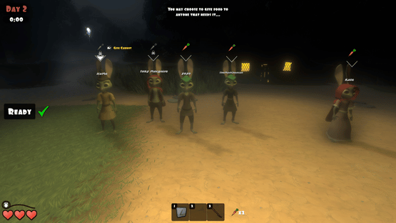 An online party game where 2-12 players venture into a procedurally generated forest in search of food. With supplies limited, you will have to decide who will make it out alive and who will not!