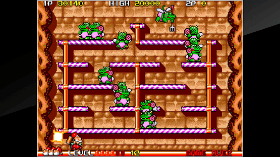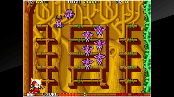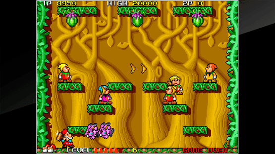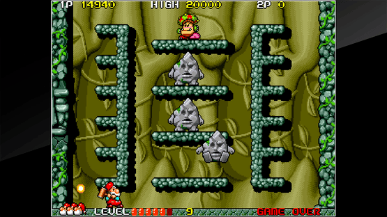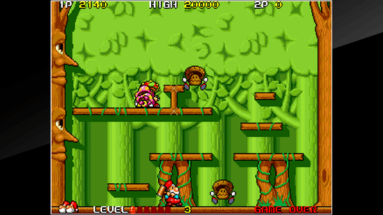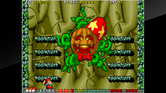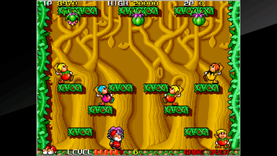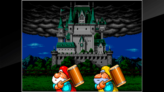 "DON DOKO DON" is a fixed-screen action game released by TAITO in 1989. Take control of the old lumberjacks Bob and Jim to progress through a variety of tricky stages. Pick up items to power up, beat the boss at the end of each ROUND, and rescue the captive king and princess!