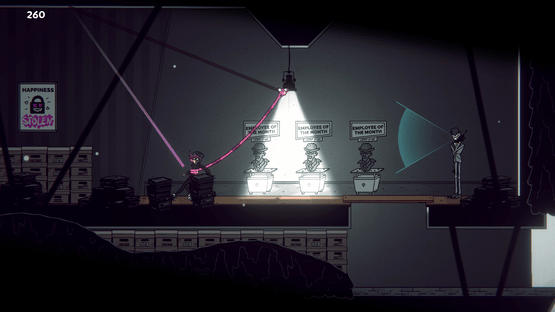 Thief of Smiles is a 2D physics puzzle game with stealth elements. Move lamps, fling barrels, tie up enemies and swing through levels. But be sure to stay hidden in the shadows. All you need for this is your chewing gum companion Ponti. Uncover the dark secrets of the Smiles Savings Bank!
