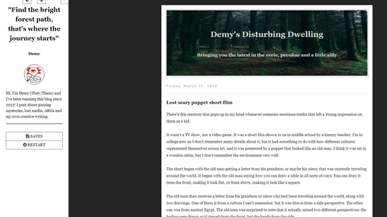Media that wants to stay lost. A horror blogger stumbles upon a series of lost media finds that leads them to uncover the mystery of characters "escaping" from their source material.