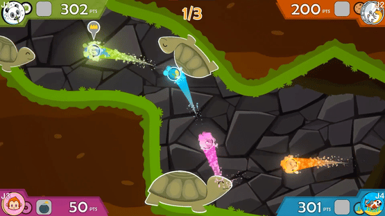 Aniballs is a racing game where you control small animals in balls and race. Players roll through unique 2D circuits with a side camera and can throw objects such as spears, bombs, or time stops at each other!