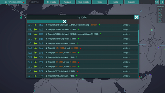 Buy planes, set prices, calculate the budget, track the passenger flow of each city, create routes for the whole world, build your ideal airline