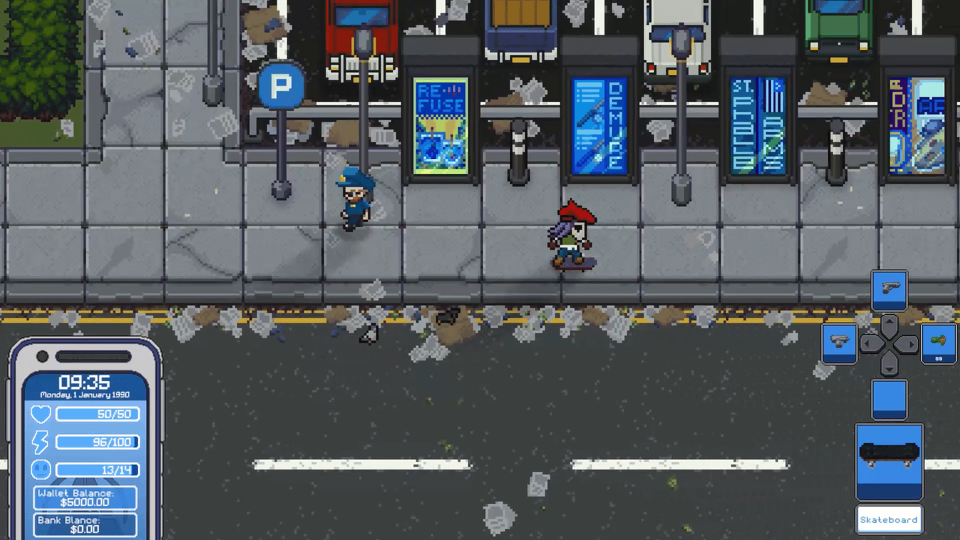 Take on the role of a serial killer who creates paintings with their victims blood! Sell your creations to earn money while trying to avoid capture by the police and other civilians. In this pixel art adventure you'll play as Psycasso, a struggling gallery artist living in an open world city. By day you'll work a day job to earn money and level up skills, seamlessly blending into society. By night you'll be on the lookout to harvest 'red paint' from one of the 'walking meat-bags' to help you create original 2D art. Sell your artwork to art galleries for huge profits! Become rich from your unique artwork while avoiding capture from the ever growing police presence using stealth techniques and unique traps. Buy property, upgrades, furniture, weapons, discover a bustling city and play a host of mini games in this controversial indie title like nothing before.