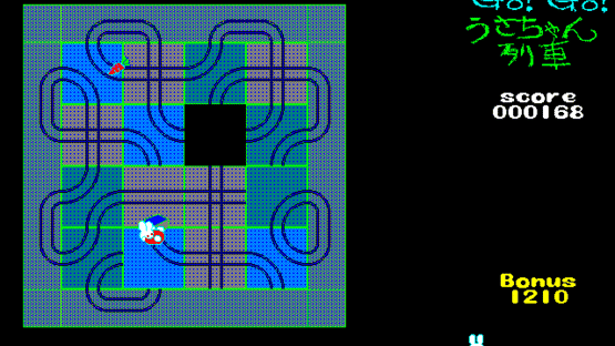 This title was developed by Ken Takahashi and co-produced by Miya Ayako. The game is based in Konami's Loco-Motion, and the player has to collect the carrots and go through the outer tracks to clear the stages.
