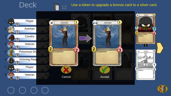 Knights and Goblins is a deck building card game. Build and play your deck against the computer. Win challenging opponents, get new cards to improve your deck, and design your own unique card. Will you manage to win all rounds and be the new champion?