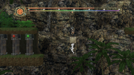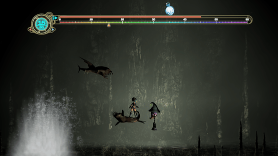 This game is a side-scrolling puzzle action game where the player controls time to navigate through obstacles and enemies while collecting items and reaching the goal.