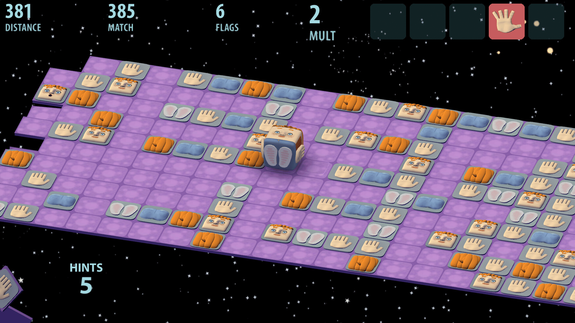 Roll Cubey to match cube sides to body-part tiles and avoid falling into the cold vacuum of space!