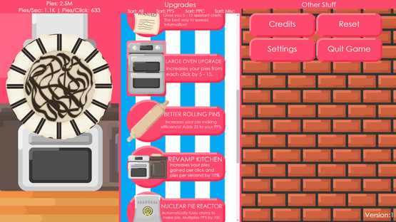 PieClicker is a beautiful clicker game designed to be visually appealing. Click, Get Pies, Upgrade Pies.