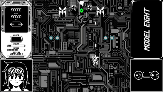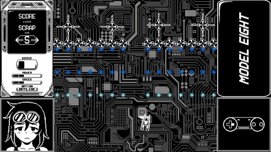 A shoot em' up with a manga inspired look. Destroy enemies, and use their salvage to gain more power.