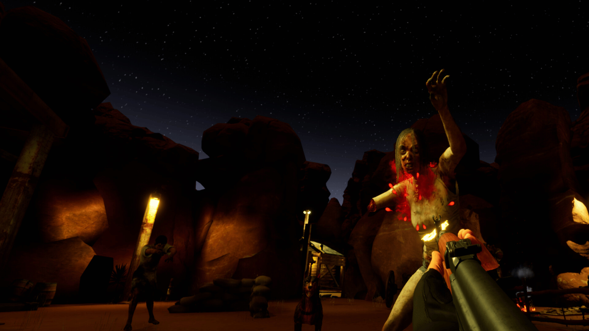 A cooperative virtual reality game playable from 1 to 12 players with a variable game duration between 10 to 30 minutes.