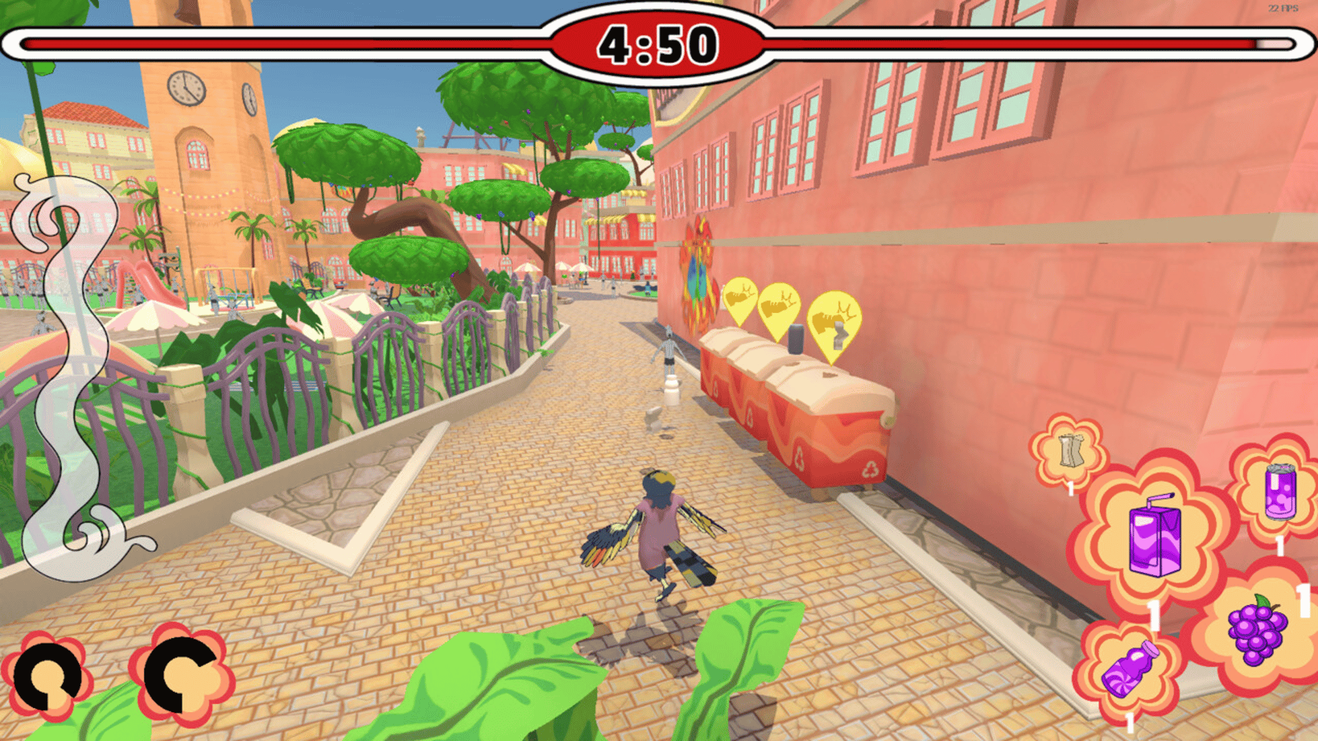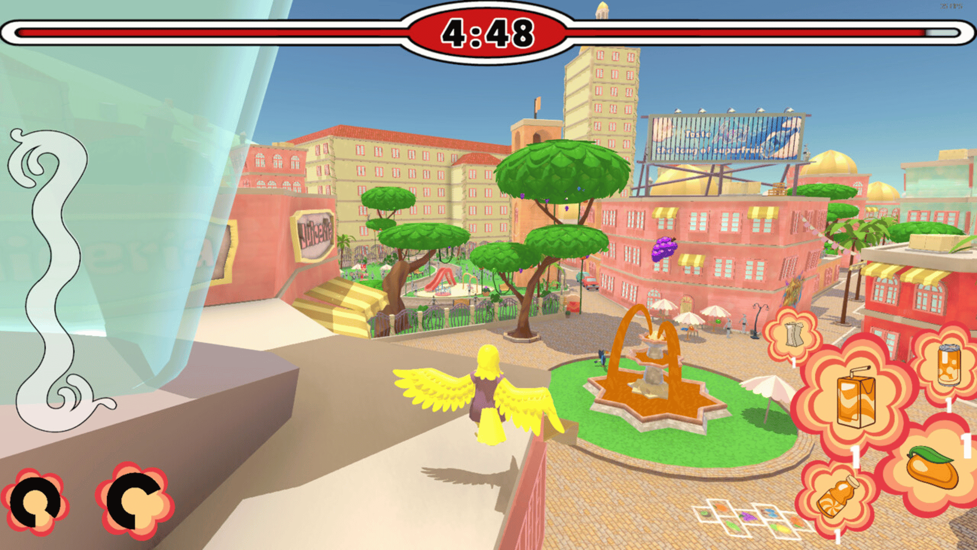 A friendly but competitive couch party game for all ages! Play as tropical birds competing to splash pedestrians with your team’s juice in this match-based party game. Bounce around a tropical metropolis, gather fruit and recyclables, craft juicy drinks, and splash the people of Grape Juice City!