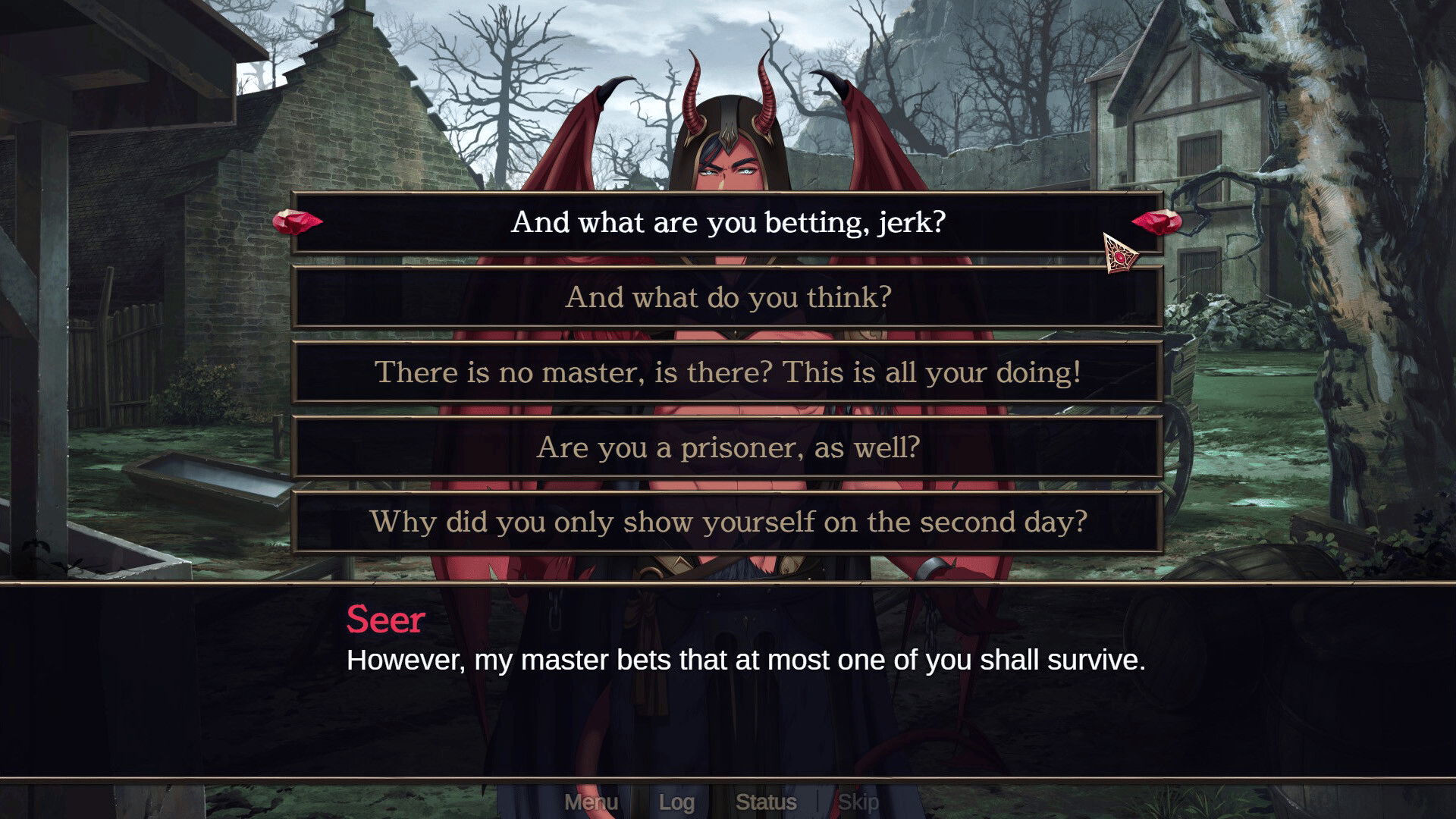 You are a girl with a demonic heart, trapped with a group of suspicious individuals. When a demonspawn arrives, the humans start dying. Save your life and romance some shady characters!